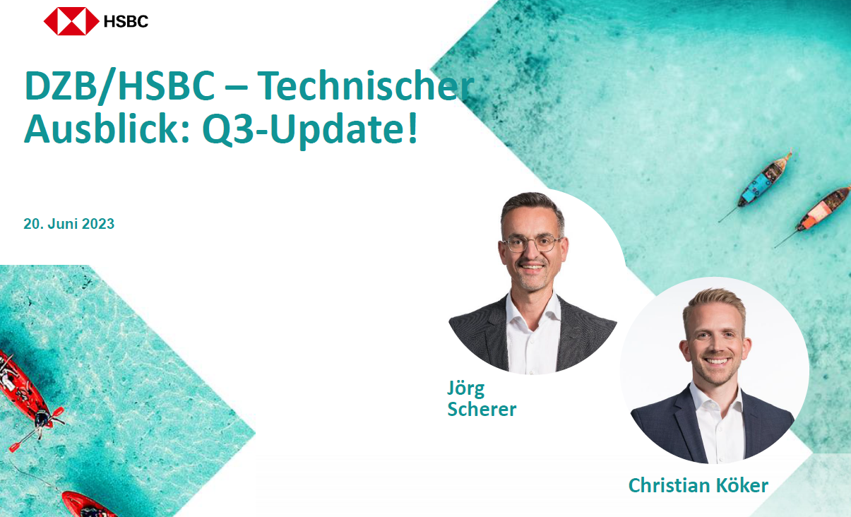 In dieser Aufzeichnung vom 20. Juni 2023 analysiert Jörg Scherer (Leiter Technische Analyse bei HSBC Deutschland)in einem kompakten, einstündigen Ausblick in die kurz- bis mittelfristige technische Situation der wichtigsten und aktuell auch spannendsten Aktien-, Rohstoff-, Zins- und Währungsmärkte. Im Anschluss präsentiert sein Kollege Christian Köker korrespondierend passende Produktideen zur Ergänzung der Portfolien Ihrer Kunden.
